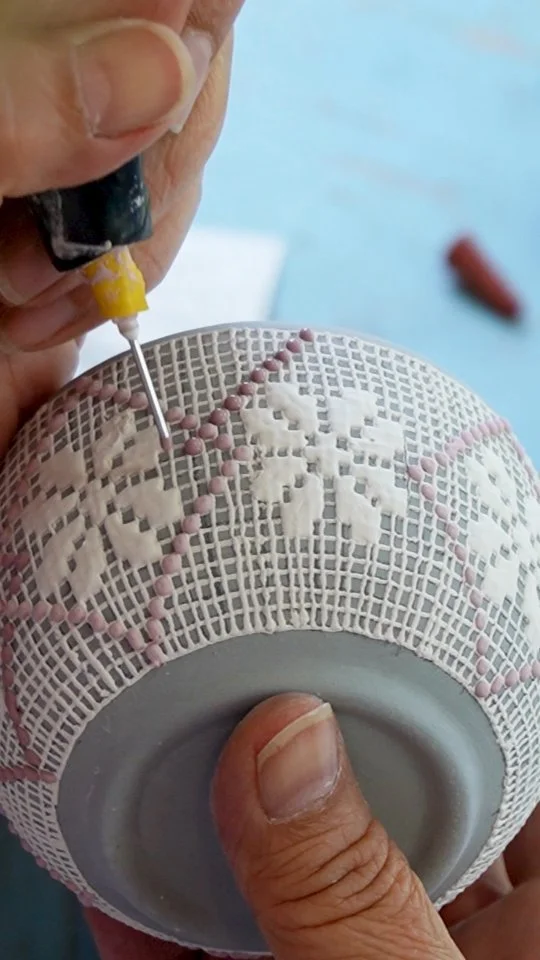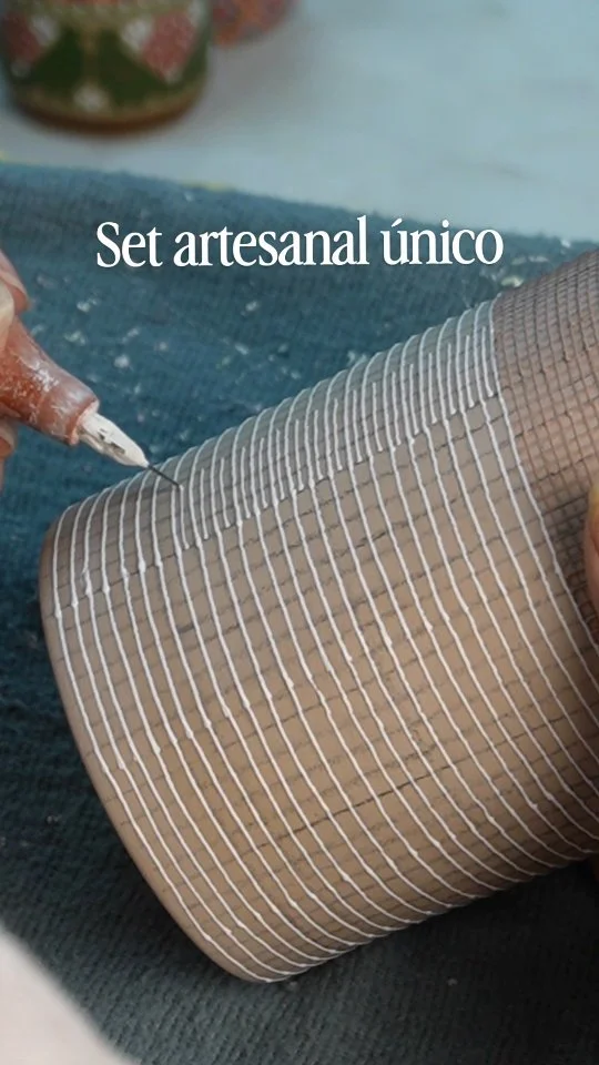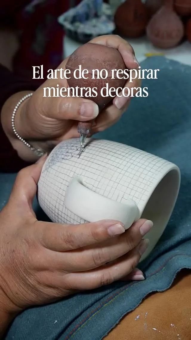 Una ilusión táctica creada a través del fuego y el pulso. Diseñado y decorado a mano por la maestra artesana Eva Servín Morales, cada pieza es única y testimonio de amor por la artesanía.